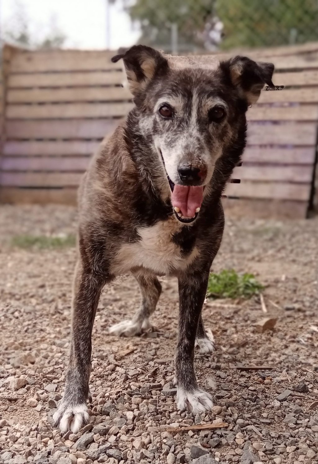 Lei è Camilla, una femmina e proviene da un canile fatiscente, da cui l’abbiamo riscattata per poterle dare visibilitâ ed una vita più dignitosa. Non sappiamo quanto tempo della sua vita abbia passato dietro le sbarre, di sicuro molti anni…Ora ha la possibilità di uscire dal suo box più volte durante il giorno, e mangiare cibi regolari. È ancora molto diffidente verso l’uomo, di indole buona, non aggressiva, si fa avvicinare ma con molto tatto e pazienza. É adottabile preferibilmente a distanza ma valutiamo eventuali richieste di adozione che dovessero pervenire
