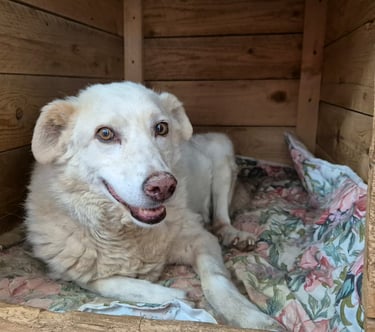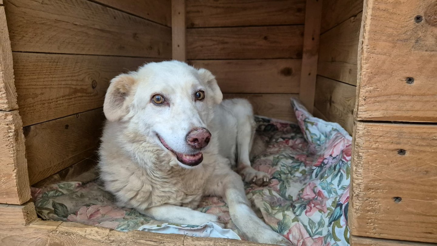 Viveva libera in campagna e faceva da guardia alle pecore finché un giorno ne ha uccise due e così il suo padrone, che manda avanti la sua famiglia grazie a loro, si è trovato costretto a legarla. Allora le volontarie del rifugio hanno chiesto al padrone di poterla prendere per cercarle una casetta tutta sua e lui, ha gentilmente accettato.
