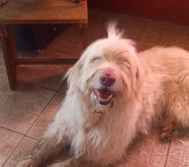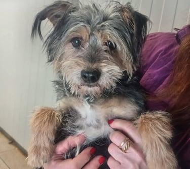 Giove deve averne passate veramente tante, la paura si è colta subito nel suo sguardo non appena ha fatto il suo ingresso in rifugio ad inizio Luglio 2025. Aveva un ammasso di pelo, e provvisoriamente abbiamo provveduto a dargli una” sforbiciata” generale togliendo i nodi più significativi.