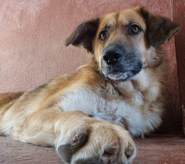 Santiago è un cucciolone di circa un anno., taglia media. Arrivato in rifugio a metà luglio 2025, è stato segnalato vagante per le vie di un paese già da diversi gg e c’era il forte rischio che venisse investito dalle auto in transito. Fortunatamente siamo riusciti a metterlo in salvo e portarlo in rifugio.