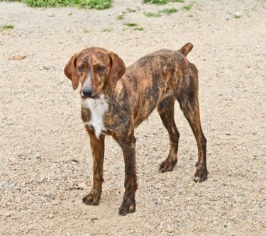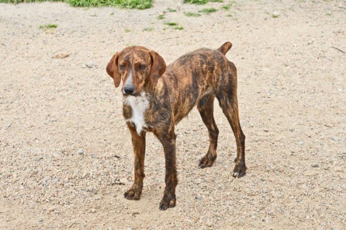 Lui è Pino, detto il timidone. E’ un segugio maremmano nato a Gennaio 2014, ritrovato smagrito in aperta campagna. E’ di indole buona, è solo un po timido ma conquistata la sua fiducia non ha problemi con gli umani. Va daccordo con maschi e con femmine, è una taglia media contenuta.