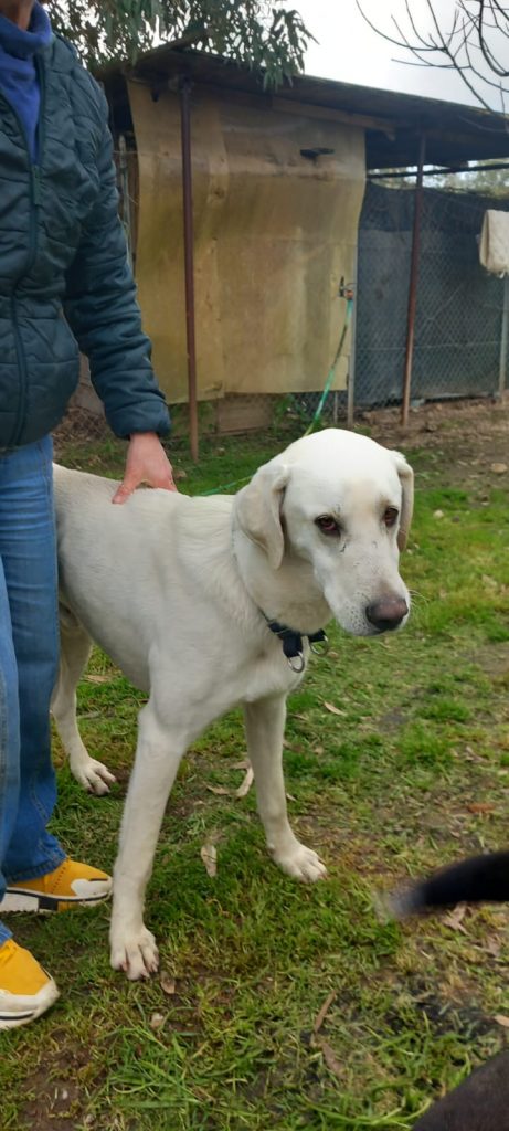 Beniamino è un cane meticcio di tg medio grande, 23 kg, già sterilizzato, ha 4 anni, buono di indole, solo un po timido,( non aggressivo)poichè non ha avuto un passato facile.Chi vorrà adottarlo, sappia che dovrà dargli il giusto tempo nel fidarsi di voi, senza avere fretta di avere immediatemente riscontro. Lo abbiamo trovato una mattina accanto al nostro cancello della struttura, probabilmente è stato” usato” per fare da guardia a qualche gregge nei terreni circostanti ma mai nessuno l’ha reclamato. Aveva un grosso cappio al collo, era certamente legato a qualche palo dei terreni circostanti ed è riuscito a liberarsi. Il nodo era molto stretto, abbiamo faticato non poco a rimuoverglielo. E’buono di indole, in canile va daccordo con tutti, sia maschi che femmine, non con i maschi dominanti.